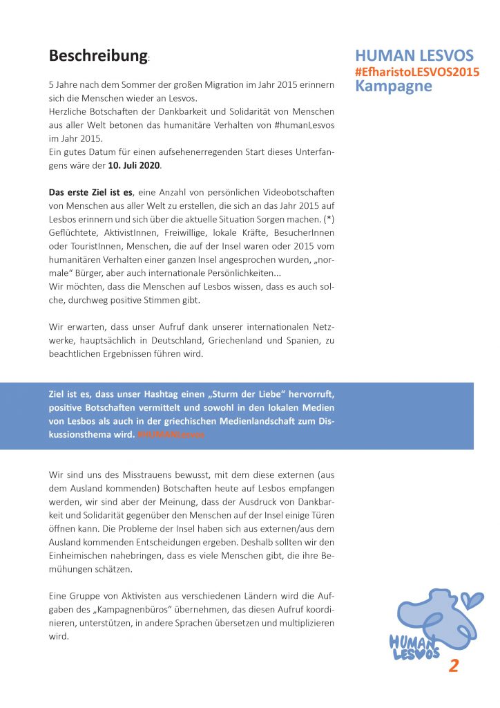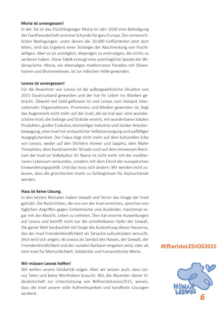 Die Hellenische Gemeinde zu Berlin e.V. unterstützt die Initiative #HumanLesvos