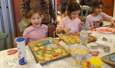 Η εκδήλωσή μας ολοκληρώθηκε απολαμβάνοντας τα χειροποίητα μπισκότα τους. Ετσι, δημιουργήσαμε μια ανεξίτηλη ανάμνηση για όλη την κοινότητα, ενισχύοντας το πνεύμα των Χριστουγέννων και τη σημασία της οικογενειακής ενότητας.