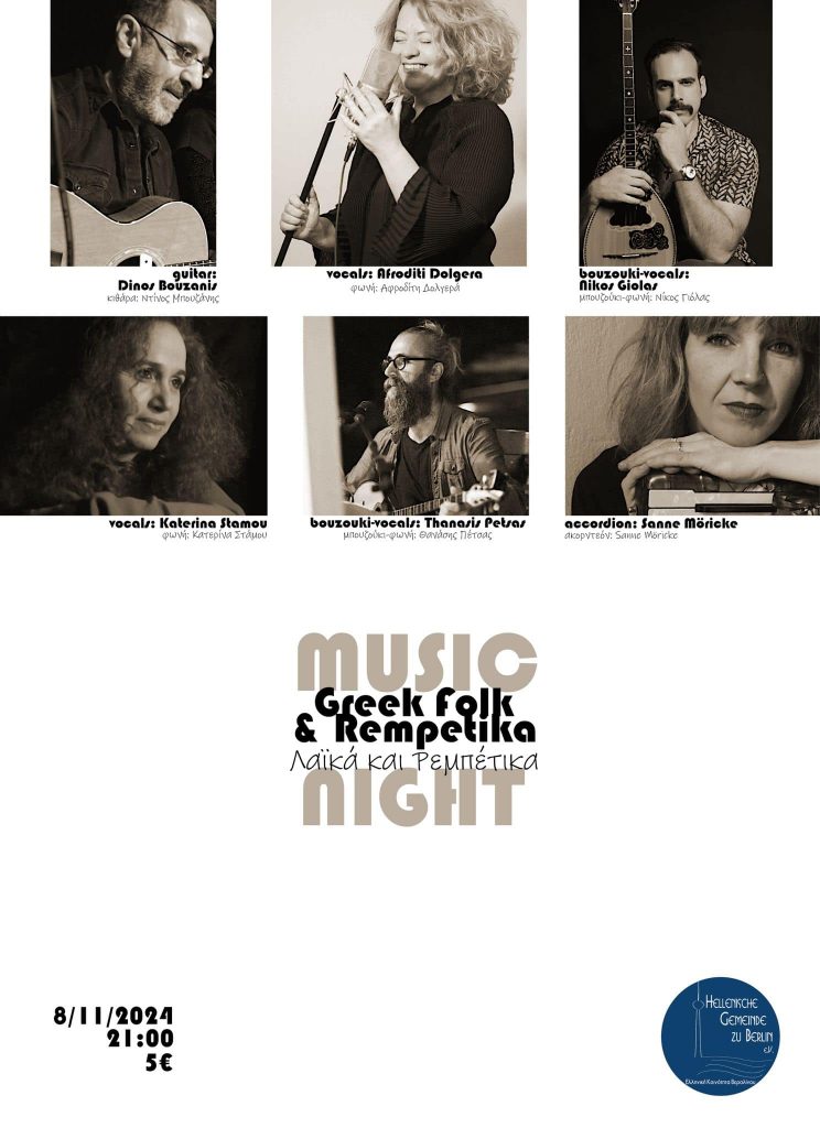 Wir laden Sie zu einem musikalischen Abend voller Folk- und Rebetiko-Klänge ein! Kommen Sie zum gemeinsamen Singen und Feiern und genießen Sie authentische griechische Musik.