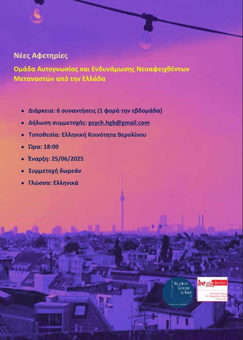 Sie richtet sich an Erwachsene, die vor kurzem (in den letzten 1–5 Jahren) aus Griechenland nach Berlin gezogen sind.