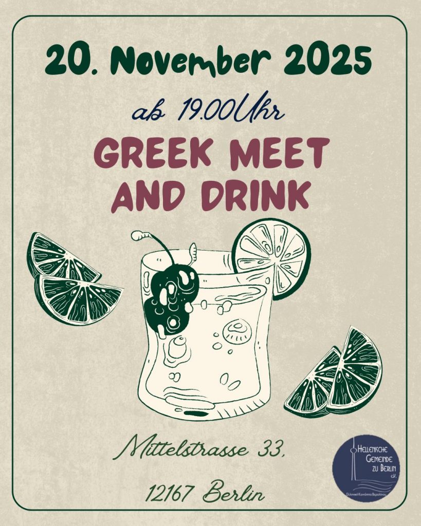 Auch in diesem Monat lädt uns das Greek Meet & Drink zu einem weiteren Treffen in der Hellenischen Gemeinde ein!