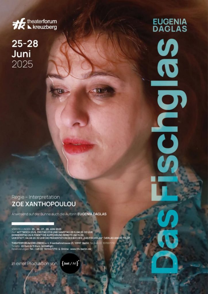 Die Theateraufführung “Das Fischglas”, geschrieben von Eugenia Dagla und inszeniert und interpretiert von Zoe Xanthopoulou, kommt im Juni nach Berlin ins Theater Forum Kreuzberg. Eine zeitgenössische künstlerische Kreation, die sensible gesellschaftliche Themen berührt, mit einer Laufzeit von 55 Minuten.