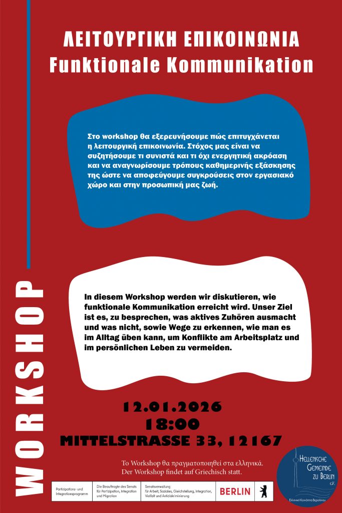 Der Workshop findet auf Griechisch statt und wird von Varvara Panagiotopoulou, Absolventin der Psychologie-Fakultät der Panteion-Universität, im Rahmen ihres Praktikums geleitet.