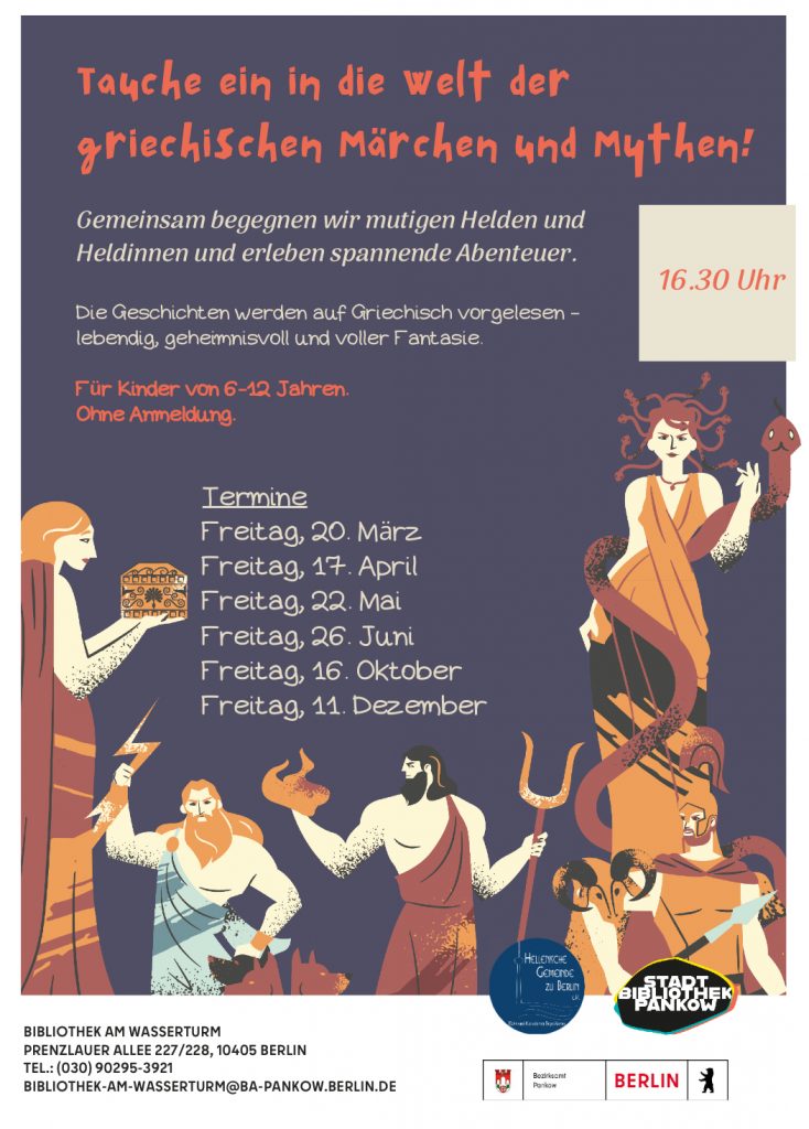 Die Geschichten werden auf Griechisch vorgelesen – lebendig, geheimnisvoll und voller Fantasie.