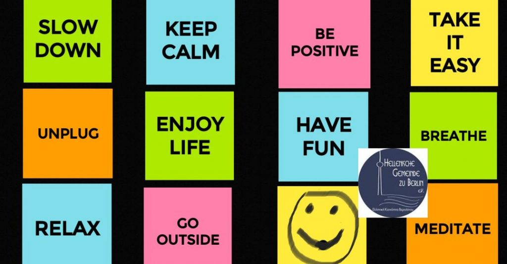 | Πραγματοποιήθηκε workshop Διαχείρισης Άγχους για άτομα 12-18 ετών με συντονίστριες τις Ελένη Γιαλίζη και Χρύσα Στεργιάννη, απόφοιτες του Τμήματος Ψυχολογίας του Πανεπιστημίου Αθηνών. Η εκδήλωση περιλάμβανε παιχνίδια και διαδραστικές ασκήσεις. Mit den Koordinatorinnen Eleni Gializi und Chryssa Stergianni, Absolventinnen der Fakultät für Psychologie der Universität Athen, wurde ein Stressmanagement-Wotkshop für Personen im Alter von 12 bis 18 Jahren abgehalten. Die Veranstaltung umfasste Spiele und interaktive Übungen. |