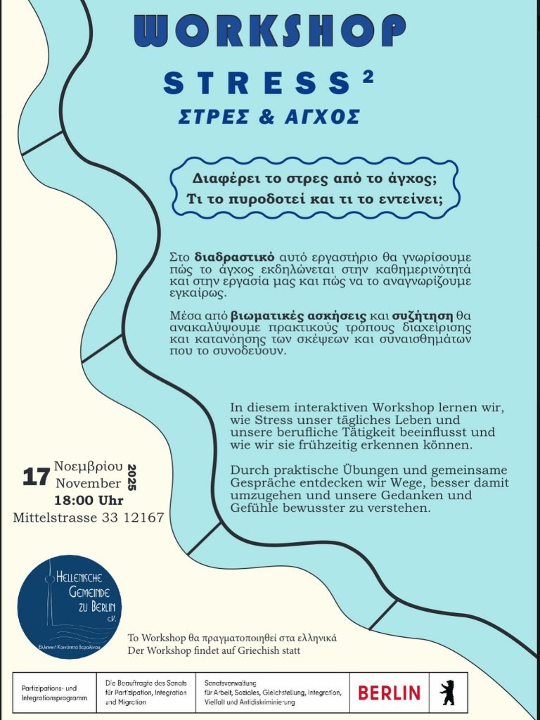 Die Veranstaltung findet auf Griechisch statt und wird von Varvara Panagiotopoulou, Absolventin der Psychologie-Fakultät der Panteion-Universität, im Rahmen ihres Praktikums geleitet.