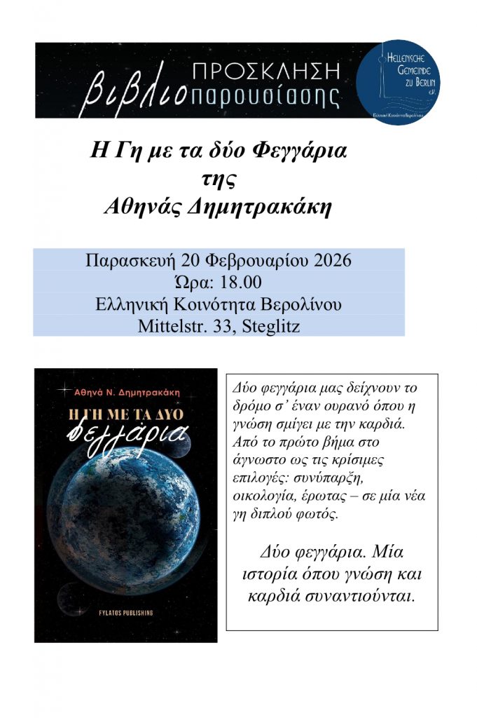 Die Hellenische Gemeinde lädt euch herzlich zur Buchvorstellung von Athina N. Dimitrakaki ein: