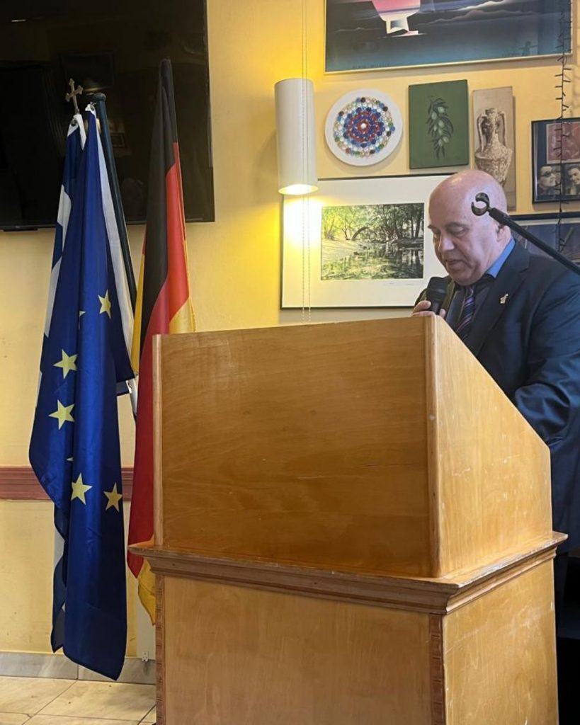 Zu Beginn der Veranstaltung betonte der Präsident der Hellenischen Gemeinde zu Berlin, Herr Panagiotis Matlis, in seinem Grußwort, dass die Geschichte der griechischen Gemeinschaft in Berlin nicht nur durch Entscheidungen und Institutionen geschrieben wurde, sondern durch Menschen, die mit Würde und im Stillen gearbeitet haben – und sehr oft durch Frauen.